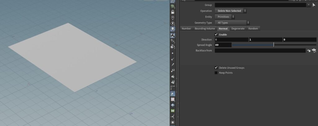 Primitive の 法線ベクトル N と指定した Direction ベクトル D のなす角度によって削除するかどうかが決まります。