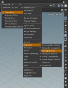 現在定義されているHoudini PackageはNew Pane Tab Type > Inspectors > Package Browserで確認できます