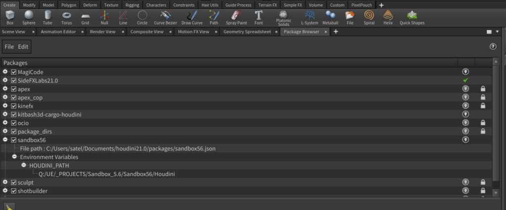 ここでは、Houdini起動時に読み込まれたすべてのPackageと、その設定内容を確認できます。
