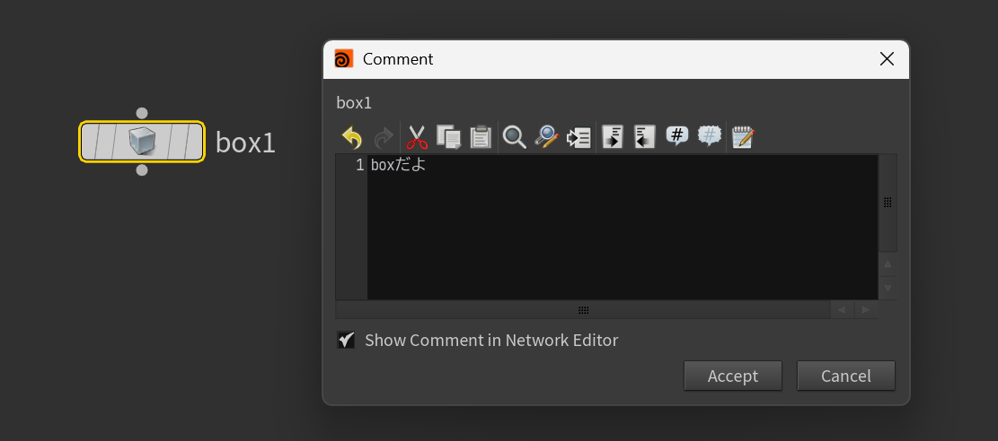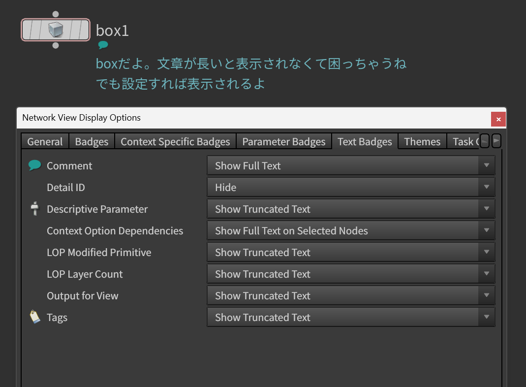Houdiniでノードにコメントを表示する方法