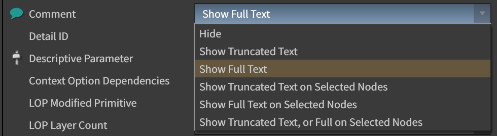 そういう時はNetwork Editor上でDキーを押す、Network Editor Options > Text Badges > Comment > Show Full Textにすることで表示されるようになります。